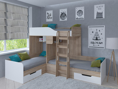 Трехместная кровать ТРИО/1 Белый/Сонома