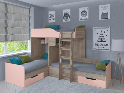 Трехместная кровать ТРИО/1 Сонома/Розовый