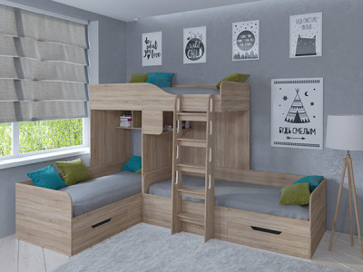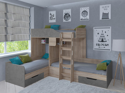 Трехместная кровать ТРИО/1 Сонома/Дуб молочный